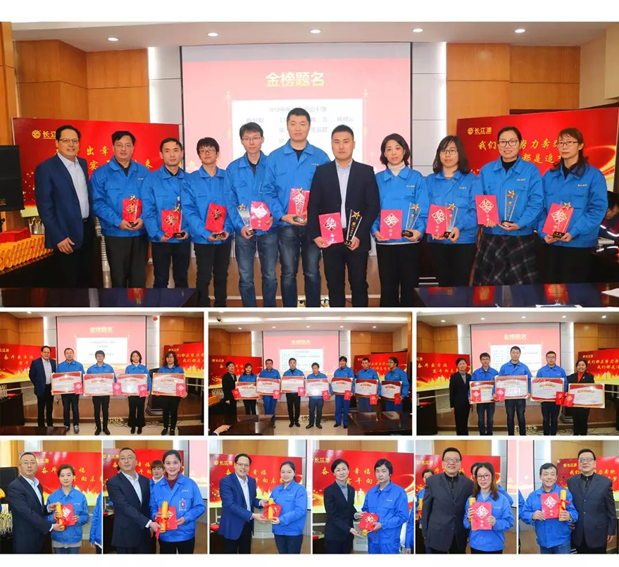 接著,為2018年度銷售工作中取得杰出業(yè)績的部門和個人頒獎!敖鸢耦}名”激勵著全場人員,大家都為之喝彩。獲獎人員依次上臺接受公司領導的榮譽表彰,并合影留念。
